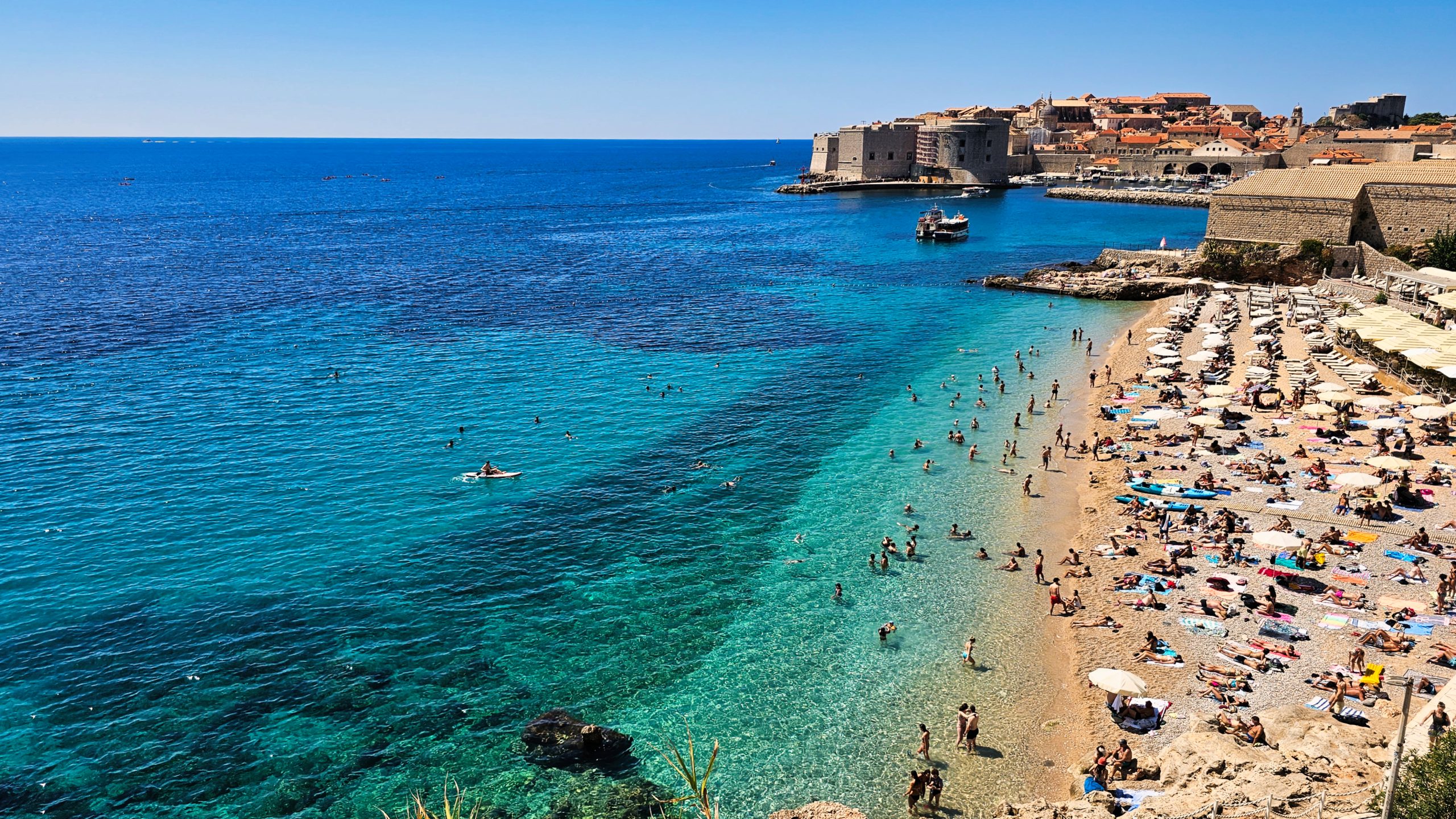 - Banje Beach: la más famosa, con vistas directas a las murallas.